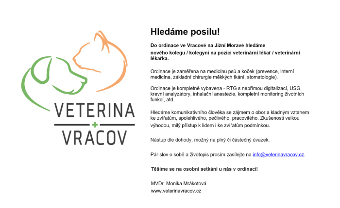 nového kolegu / kolegyni na pozici veterinární lékař / veterinární lékařka.